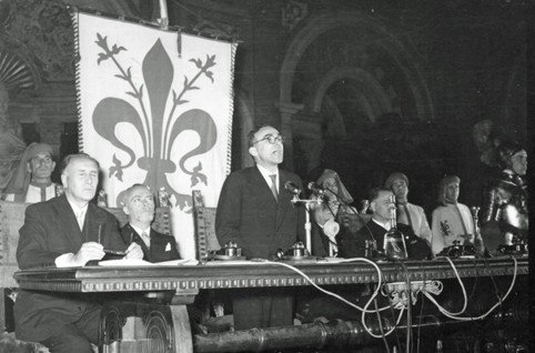 Riflettendo sul famoso discorso sul «Valore delle città», tenuto a Ginevra il 12 aprile 1954, l’anno dopo La Pira volle chiamare a Firenze i sindaci di tutte le capitali del mondo per stringere un patto di amicizia e di pace. L’apertura solenne fu la sera del 2 ottobre 1955 nel Salone dei Cinquecento, con un lungo discorso di La Pira che ripercorse la genesi del convegno e lo scopo ultimo, ovvero dar vita «ad uno strumento diplomatico nuovo che esprime la volontà di pace delle città del mondo», perché «la pace non consiste più in un atto che viene solennemente siglato dai massimi responsabili della vita politica delle Nazioni», ma sempre di più in un processo che nasce dal basso, dalle comunità.