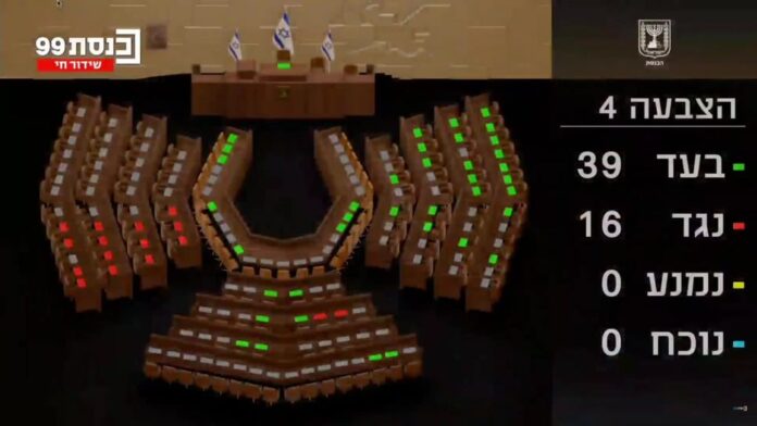 Ieri sera il parlamento israeliano ha approvato con 39 voti a favore e 16 contrari il disegno di legge presentato dal ministro della Sicurezza Nazionale ed esponente dell’estrema estrema destra israeliana Itamar Ben-Gvir. Il testo deve superare tre letture prima di diventare legge.