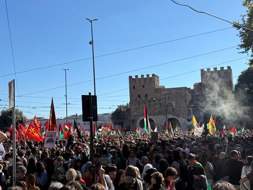 Milano, 4 ott. (askanews) – Sono migliaia i manifestanti riuniti a Roma in Porta San Paolo per il corteo nazionale “Stop al genocidio” organizzato dai movimenti palestinesi a sostegno della popolazione di Gaza. Alla manifestazione partecipano anche Cgil, sindacati di base, associazioni come Anpi e Arci e movimenti studenteschi. “Blocchiamo tutto” e “Palestina vincerà”, si legge su alcuni degli striscioni esposti dai manifestanti che sventolano bandiere della Palestina scandendo il coro “Siamo tutti antisionisti”.