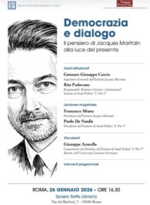 In questo contesto, la lezione maritainiana continua a richiamarci a un’idea più esigente di democrazia: non soltanto una forma di governo, ma una vera e propria forma di civiltà. Una democrazia che mette al centro la persona, riconosciuta nella sua dignità e nella sua apertura relazionale; una democrazia che vive di legami, di responsabilità condivise, di una cultura capace di tenere insieme libertà e verità, diritti e doveri, pluralismo e bene comune. È in questa prospettiva che il dialogo non appare come un semplice metodo, ma come una dimensione costitutiva della convivenza civile.