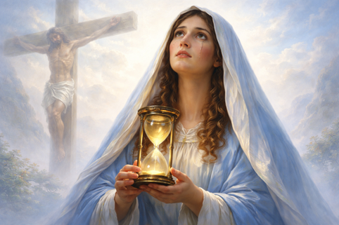 Maria teneva nel cassetto del cuore una clessidra che le dava il potere di disporre lo scorrere del tempo. Era l’unica eccezione che le era stata fatta dal piano di sopra. Avrebbe potuto allargare la strozzatura dei due coni in modo che la sabbia precipitasse con maggiore velocità e lo strazio finisse prima dello scorrere normale del tempo. Se lo avesse fatto, avrebbe anticipato suo Figlio inchiodato su una croce e questo era oltre le sue forze, quasi fosse lei a destinarlo all’ultimo supplizio. Far svolgere la scena per come procedeva, senza un suo intervento, le era di altrettanto strazio.