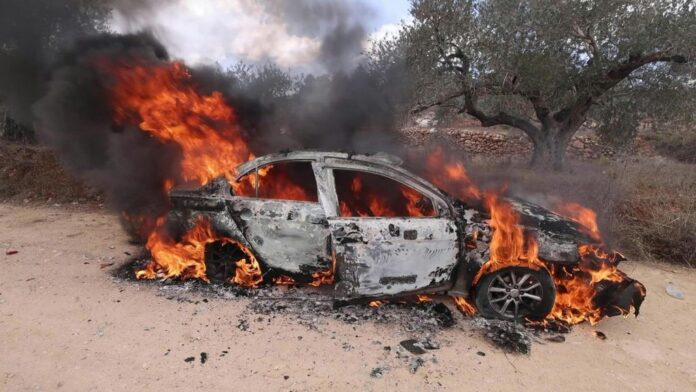 Le autorità israeliane affermano che quattro palestinesi sono rimasti feriti nell’attacco e che 10 veicoli, un fienile, una fabbrica di plastica e un grande magazzino sono stati dati alle fiamme.
