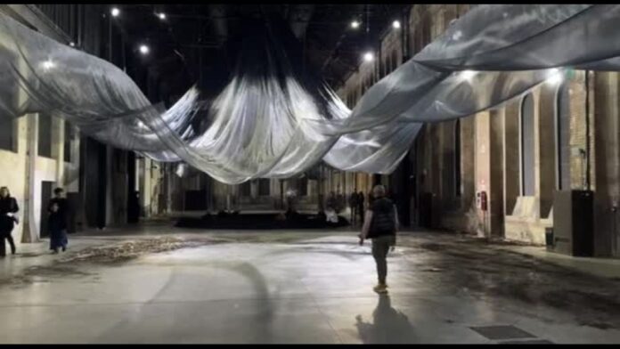 “E’ composta da una grande scultura cinetica che costantemente si muove – ha detto ad askanews – e che ispirata ai quantum computer, sono questi macchinari in via di sviluppo che l’artista ha avuto modo di studiare in una serie di residenze di ricerca che in qualche modo rappresentano il futuro della computazione. Sono macchinari ancora in via di sviluppo e ovviamente la cosa che ha interessato l’artista e quello che per gli scienziati in qualche modo ancora non funziona, ossia il fatto che questi computer siano estremamente sensibili, se vogliamo usare una parola umana e dedicarla alla macchina, ma sono sensibili a delle radiazioni di cui forse noi stessi siamo coinvolti ma forse non siamo cos attrezzati per riconoscerle”.