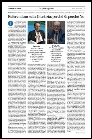 Il 22 e 23 marzo i cittadini italiani saranno chiamati a votare sul referendum costituzionale confermativo che riguarda la Giustizia. Trattandosi di un referendum confermativo, non è previsto alcun quorum: il risultato sarà valido indipendentemente dal numero degli aventi diritto che si recherà alle urne. Sulle ragioni del Sì e del No abbiamo intervistato Giovanni Guzzetta, costituzionalista, sostenitore del Sì; e Lucio D’Ubaldo, direttore de Il Domani d’Italia, del Comitato società civile per il No.