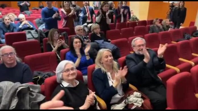 Roma, 23 mar. (askanews) – Un piccolo applauso ha salutato i primi exit poll del referendum che vedono in vantaggio il No, seppur sul filo, al “Comitato “Società Civile per il No al referendum costituzionale”, riunito Centro Congressi Frentani, a Roma.