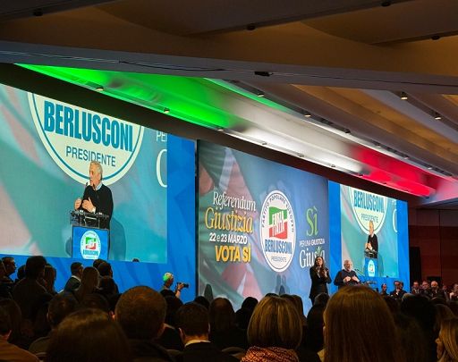 In una sala dell’hotel Ergife di Roma, gremita di simpatizzanti arrivati da tutto il centro Italia, il nome del Cavaliere risuona costantemente negli interventi di tutti. Francesco Paolo Sisto e Giorgio Mulè rispolverano anche uno dei cavalli di battaglia dei comizi del fondatore di Fi. Una sorta di credo laico, riadattato alla battaglia politica di oggi sul referendum, con cui i due dirigenti azzurri interrogano la platea per “onorare – spiega Mulè che è responsabile della campagna di Fi per il Sì – il patto di lealtà con il nostro Presidente rispondendo a poche domande con un Si o con un No”. Tra le altre cose chiede: “Volete un giudice finalmente terzo e imparziale? Volete che i pubblici ministeri abbiano gli stessi diritti degli avvocati della difesa? Volete che il magistrato che sbaglia paghi per i suoi errori?”.