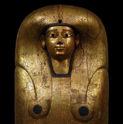 La mostra culmina nel mistero della regalità divina. Le statue e i rilievi che chiudono il percorso sono tra le espressioni più alte dell’arte faraonica: l’Hatshepsut inginocchiata in atto d’offerta, la diade di Thutmosi III con Amon, la Triade di Micerino, fino alla splendida maschera d’oro di Amenemope, dove il volto del re, levigato e perfetto, diventa icona di un corpo che appartiene ormai al divino. In chiusura, la Mensa Isiaca – eccezionalmente concessa dal Museo Egizio di Torino – riannoda il filo simbolico che da Alessandria conduce a Roma, testimoniando l’antico legame spirituale e culturale tra i due mondi.
