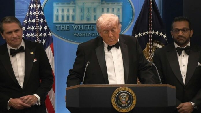 Roma, 26 apr. (askanews) – Il presidente Donald Trump è illeso dopo che un uomo armato ha tentato di fare irruzione ieri sera alla cena della White House Correspondents’ Association, l’appuntamento che ogni anno riunisce il capo della Casa Bianca e la stampa accreditata. Trump è stato portato in sicurezza mentre gli agenti del Secret Service hanno bloccato e arrestato l’attentatore prima che raggiungesse la sala del banchetto al Washington Hilton.